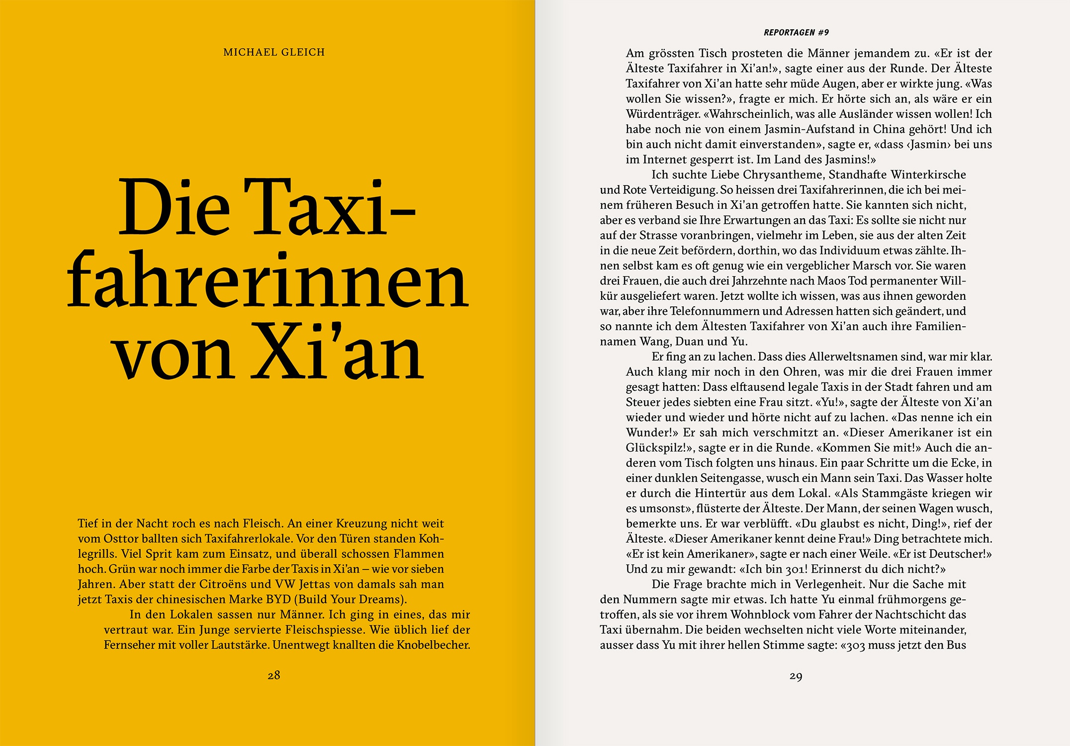 [... Reportagen] ist einerseits die große Disziplin des geschriebenen Journalismus, anderseits seit Oktober 2011 der Name eines Magazins, das genretypisch standesgemäß, also hochwertig daherkommt: leinengebunden und in einem schlichtem, aber grafisch ausgefeiltem Design gehalten. Keine Fotos, nur mehr Grafiken und Illustrationen.