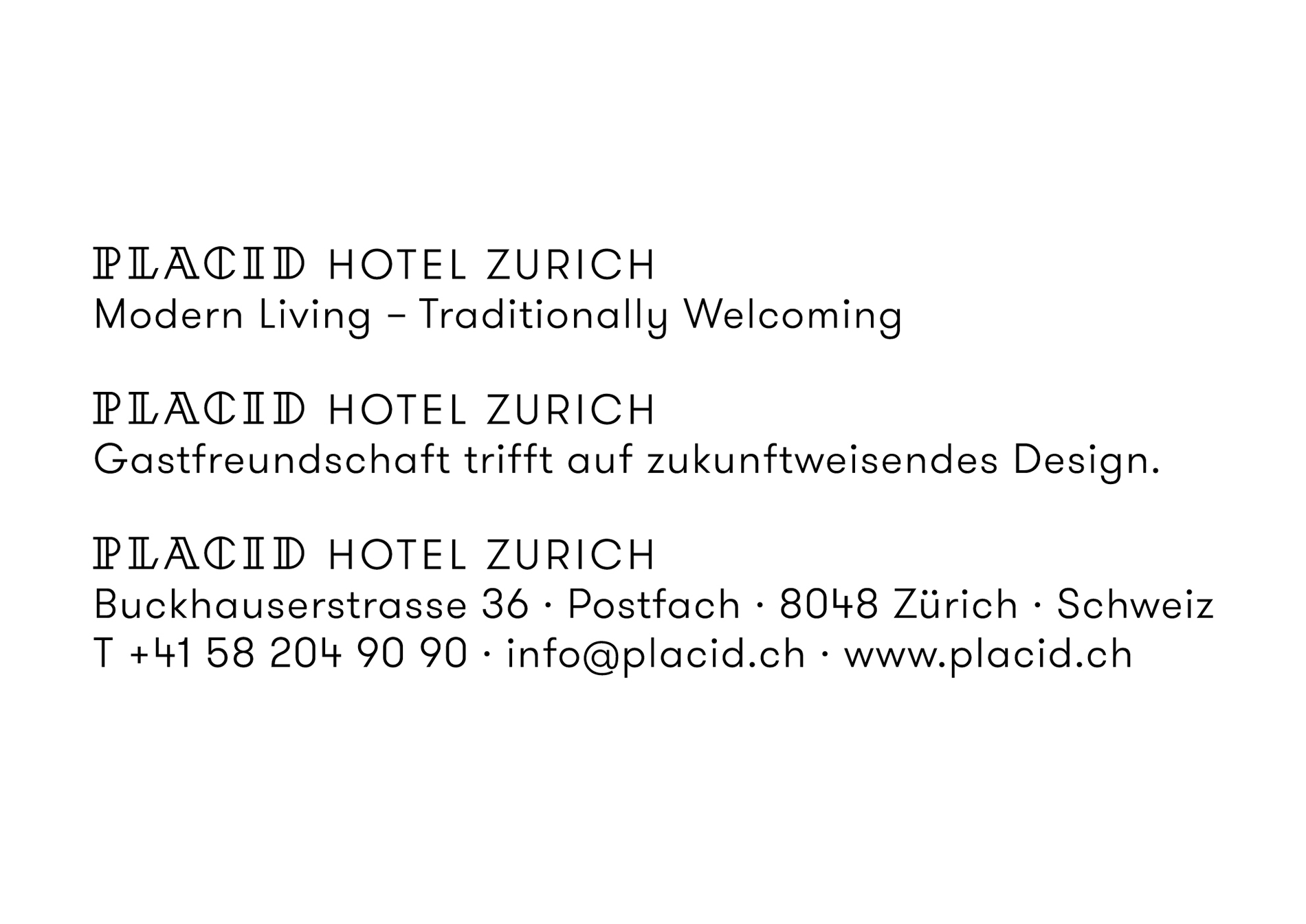 Placid Hotel Zurich: Corporate Design, Nameing, Logotype and Signage